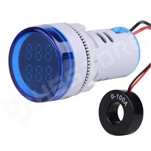 | AD16-22DVA-ROUND-BL 20...380V AC, 0...100A, LED, Feszültség és áram mérő indikátor árammérő tekerccsel, Kék
