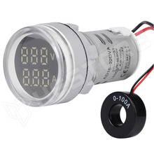 | AD16-22DVA-ROUND-WH 20...380V AC, 0...100A, LED, Feszültség és áram mérő indikátor árammérő tekerccsel, Fehér