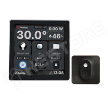 SHELLY-WDB-BLUHTB Shelly Wall Display - villanykapcsoló, vezérlőpanel, Wi-Fi+Bluetooth, fekete + Shely BLU H&T hőmérő és pára érzékelő