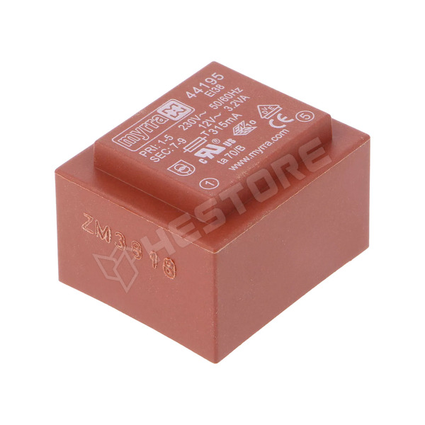 PCB transzformátor, kiöntött, EI38, 3.2VA, 230V AC, 12V, 267mA