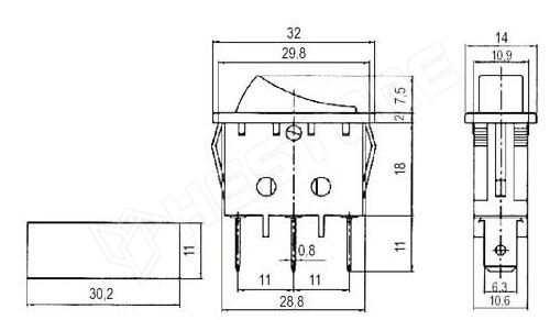 Kapcsoló, billenő, 3pólusú, 3 pin, ON-OFF-ON