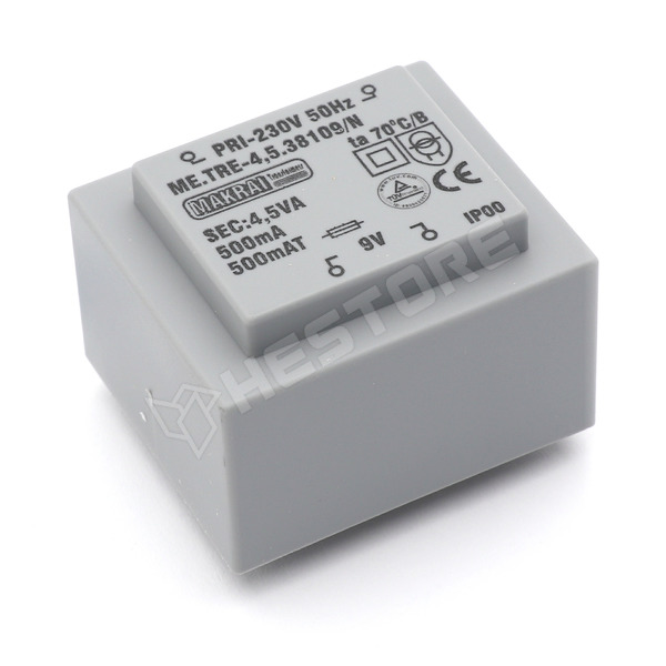 PCB transzformátor, kiöntött, EI38, 4.5VA, 230V AC, 9V, 500mA