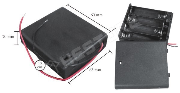 Elemtartó 4 × AA (MIGNON), fedlappal, kapcsolóval
