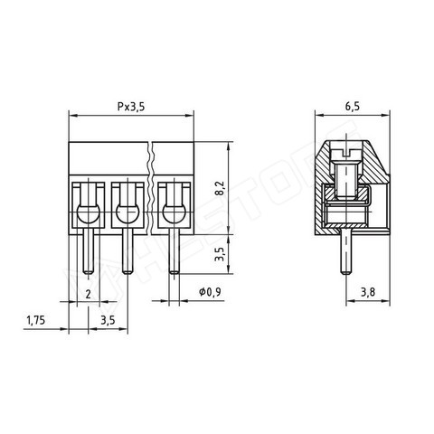 Sorkapocs vert. 1mm2 RM3,5 3P