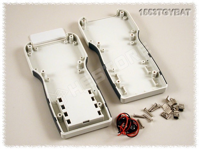 Műszerdoboz, univerzális, elemtartóval, klipszel, 147 x 89 x 24mm, ABS, fekete-szürke