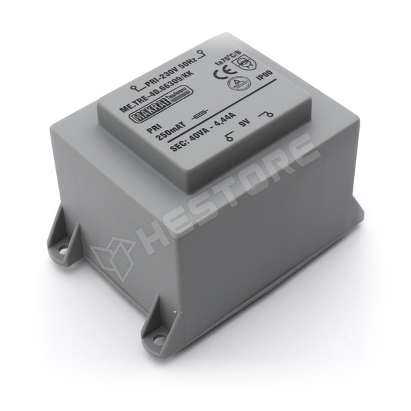 PCB transzformátor, kiöntött, EI66, 40VA, 230V AC, 9V, 4.44A