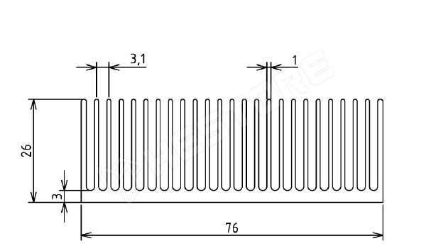 Alumínium hűtőborda, natúr, L=40mm 76x26mm