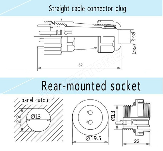 SD ipari csatlakozó pár, 2pin, anya aljzat, apa dugó, 13mm, egyenes, IP68