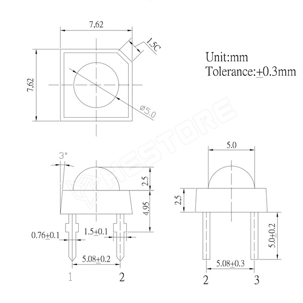 7.5 x 7.5mm |