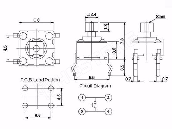 | Nyomógomb méretei | 2.4x2.4mm |
