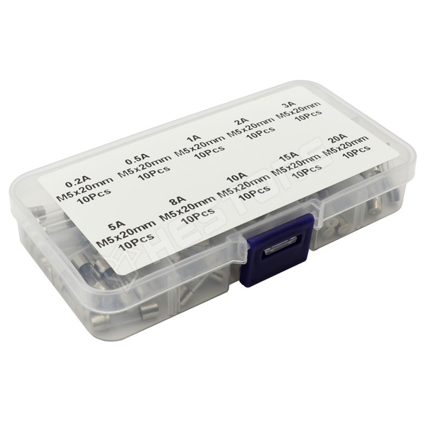 5x20mm-es biztosíték készlet, 10féle, gyors, 100db-os