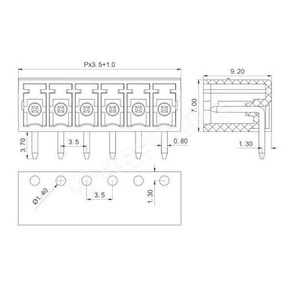 Sorkapocs, 90°, PCB, RM3.5, 3P