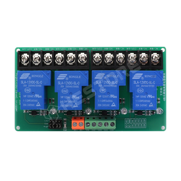 4 csatornás relé modul, 3V, opcionális vezérlés, optocsatolóval