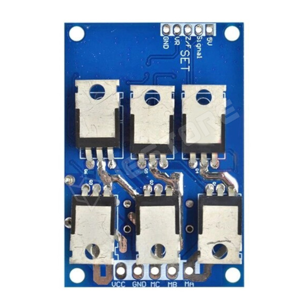 - VR : sebesség vezérlő feszültség bemenete: 0.1...5V DC (A fordulatszám 10...100%)