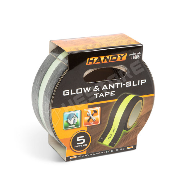 Durva, érdes felülettel rendelkező csúszásgátló ragasztószalag. Rendkívül jó ragadóképességgel rendelkezik, időjárásálló tulajdonságának köszönhetően használható kültéren és beltéren egyaránt. A foszforeszkáló betétnek köszönhetően sötétben is észlelhető a jelölt terület. Ideális lehet lépcsők, gyárak, rámpák, sportpályák terület jelölésére és minden olyan helyszínen, ahol fontos a láthatóság és csökkenteni kell a síkosságot.