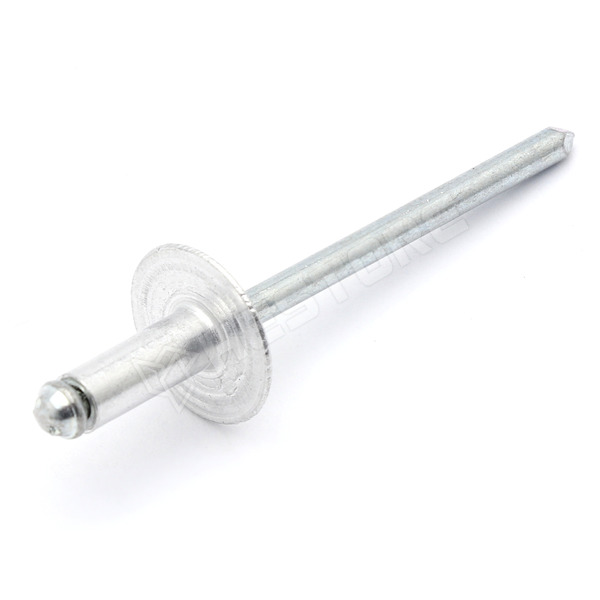 Popszegecs, széles, nyitott, acél, alumínium, Ø4.8mm, 10mm, ezüst