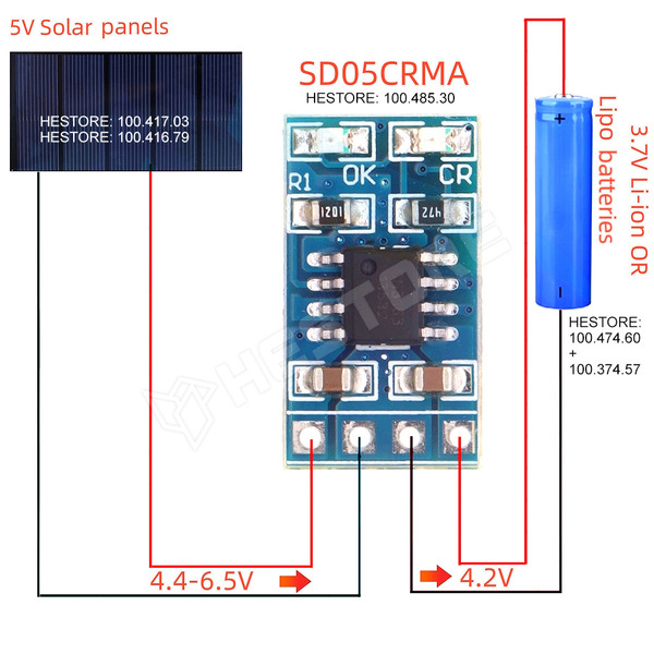 Napelem töltés vezérlő modul, Li-Ion akkumulátorhoz, 18650, Uin: 4.4...6V DC, 1A