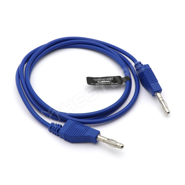 Mérőkábel, banándugó 4mm, kétoldalas, 30V AC, 3A, 1m, kék