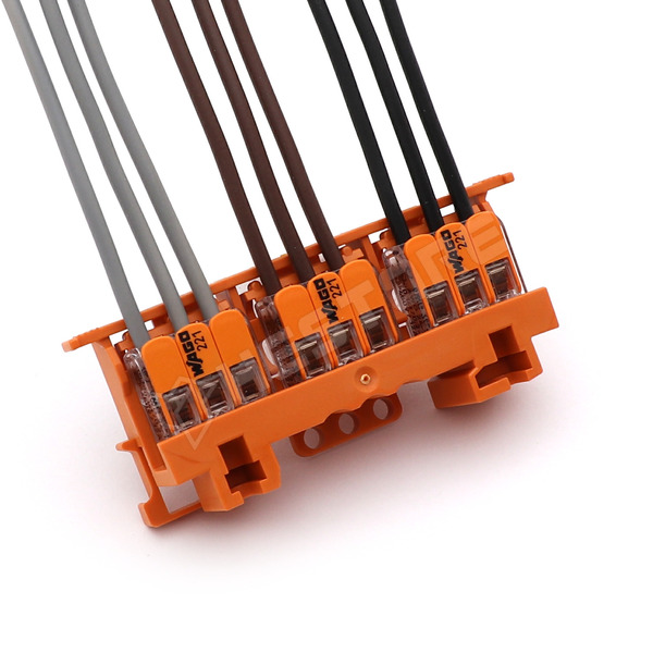 Szerelőlemez, WAGO 221-es sorozathoz, 4mm², DIN-35 sínre/csavaros rögzítéshez, narancssárga