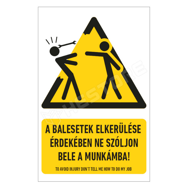 A balesetek elkerülése érdekében ne szóljon bele a munkámba!, humoros figyelmeztető matrica, 160 x 250mm