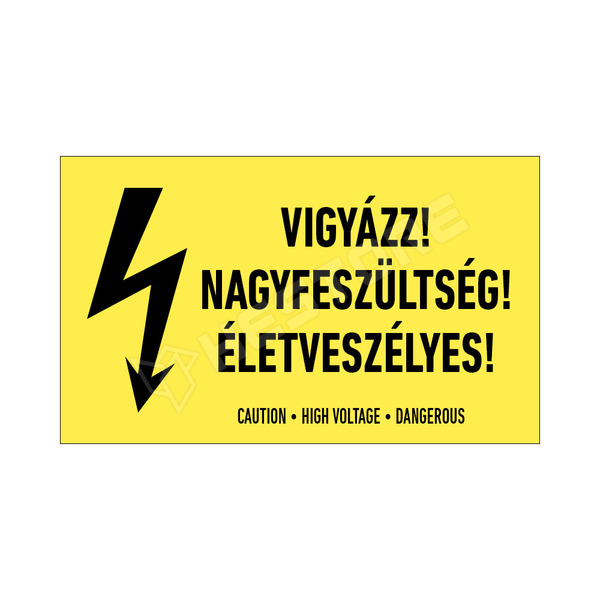 Vigyázz! Nagyfeszültség! Életveszélyes!, matrica, felirattal, 100 x 60mm