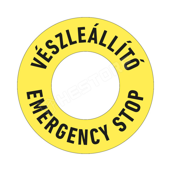 Vészleállító, matrica, felirattal, 60 x 60mm